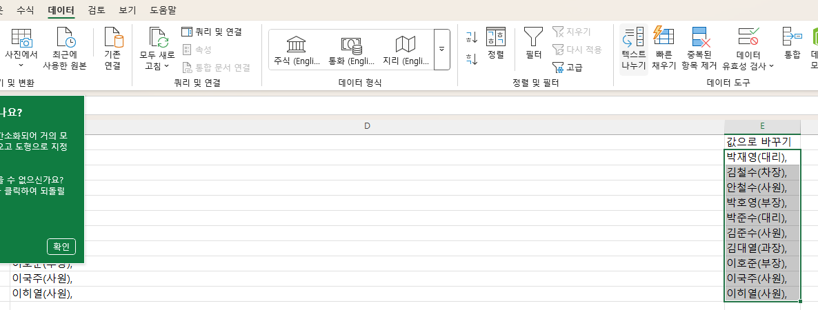 대리가 들어간 셀의 값이 비워집니다