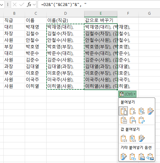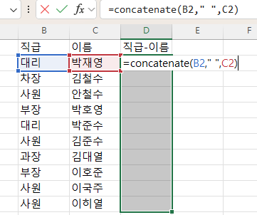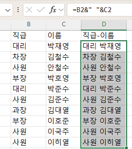 자연스럽게 이름-직급 순으로 합치고 싶다면