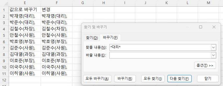 찾을 내용에 *대리* 입력